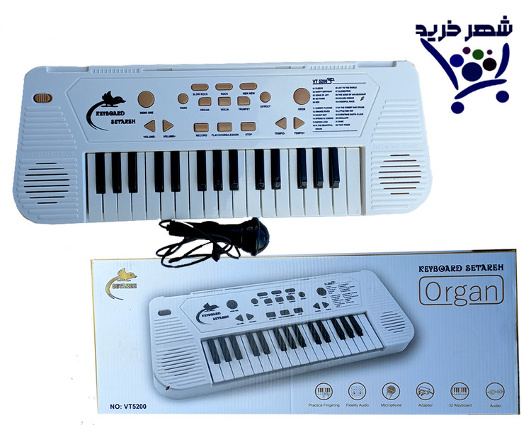 ارگ 32 کلید tv5200 یک ارگ کامل نسبتا اندازه متوسط دار ای انواع مود صدا و میکروفون به همراه سیم کابل یو اس پی