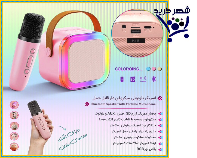 اسپیکر بلوتوث دار میکروفون دار دار دسته چرمی باکیفیت صدای خپب